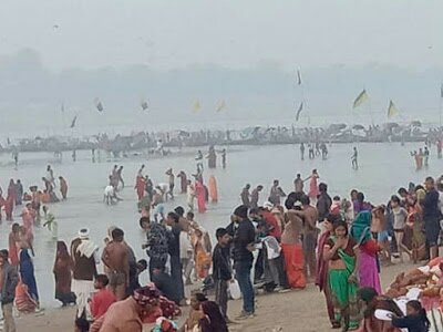 प्रयागराज में संगम घाट पर जुटे श्रद्धालु
