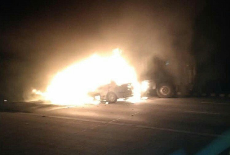 टक्कर लगते ही कार बन गई आग का गोला