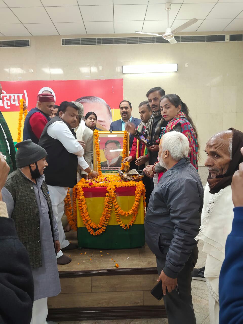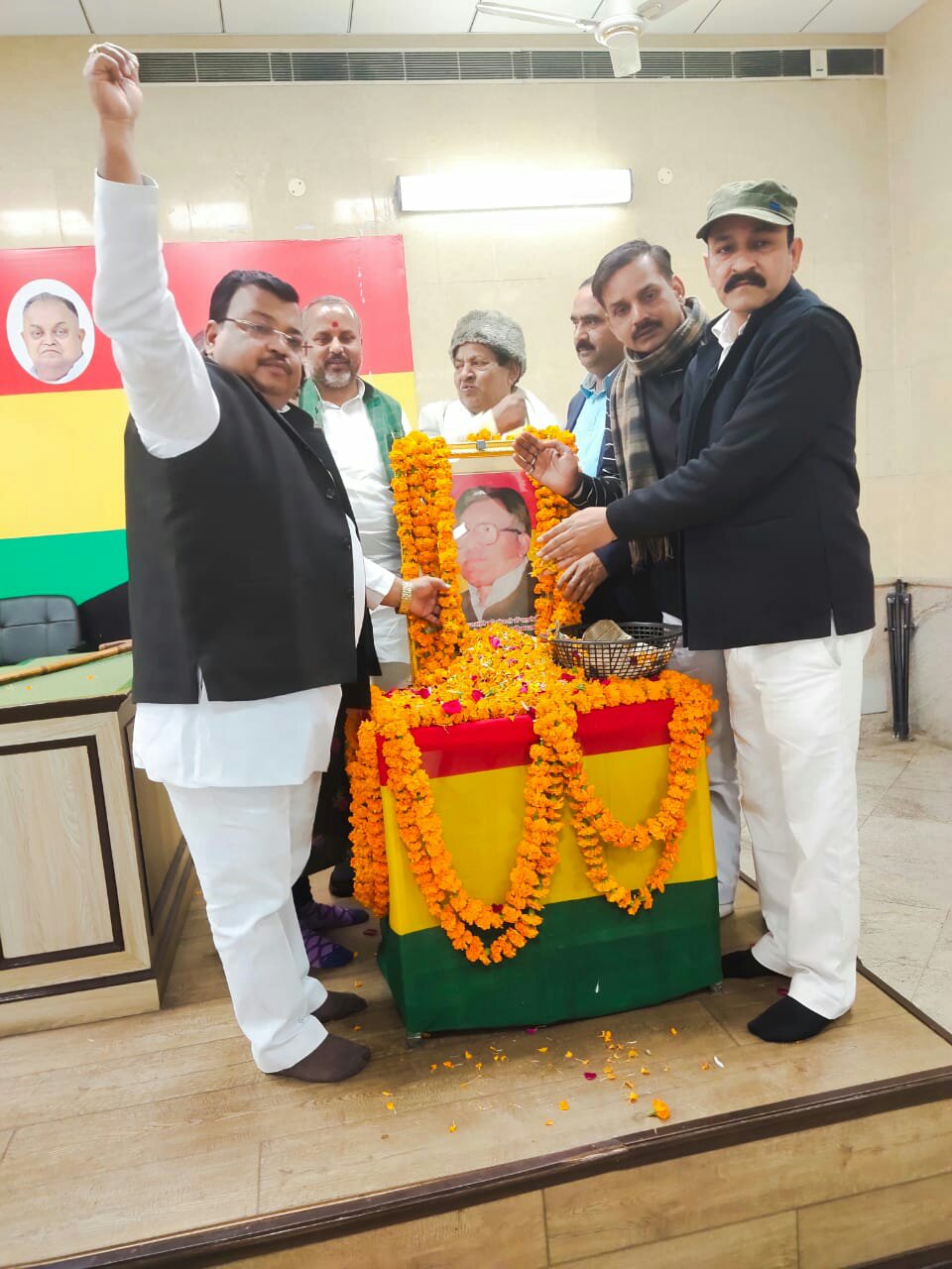 लखनऊ। प्रगतिशील समाजवादी पार्टी लोहिया के प्रदेश कार्यालय पर कर्पूरी ठाकुर जी की जयंती बहुत ही धूमधाम से मनाई गई। इस दौरान उनके चित्र पर फूल मालाएं अर्पित कर समाज के लिए किये गए कार्यों को याद कर आज के दौर में भी प्रासंगिक बताया गया।