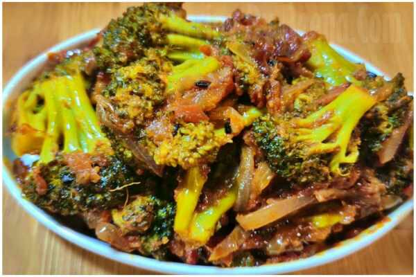 ब्रोकली की सब्जी बनाने की विधि:- ब्रोकली के पीसों को हल्के गर्म नमक के पानी में आधे घंटे भिगो कर फिर साफ पानी से धो लीजिये, इससे ब्रोकली अंदर तक साफ हो जाएगी। एक बड़े पेन या कढ़ाई में शुद्ध घी के साथ हींग जीरे को तड़का लीजिये। तैयार तड़के में कटे हुए प्याज और टमाटर को डाल दीजिये। लगातार चलाते हुए प्याज टमाटर में धनिया पाउडर, लाल मिर्च पाउडर और स्वादानुसार नमक मिला लीजिये, सबको अच्छी तरह से मिक्स कर स्वादिष्ट सब्जी मसाला तैयार कर लीजिये। तैयार सब्जी मसाले में साफ किये हुए ब्रोकली और आलू के पीस डाल दीजिये। अगर आप सूखी ब्रोकली की सब्जी पसंद करते हैं तब आधे कप से थोड़ा ज्यादा और तरी वाली ब्रोकली की सब्जी बनाने के लिये डेढ़ कप पानी मिला कर ढक कर सब्जी को पका लीजिये। पकने के बाद गर्म मसाला छिड़किए, आपकी टेस्टी और हेल्दी ब्रोकली की सब्जी सर्व होने के लिये तैयार है। फुल्का, सादा पराठा, दाल और रायते के साथ परोसिए और खाइये।