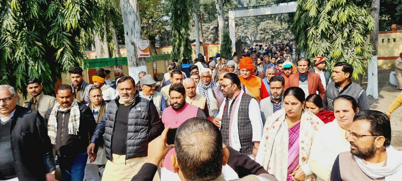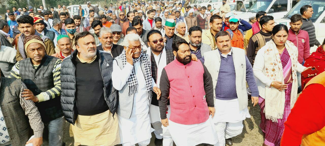 बिजनौर। किसान महापंचायत में समाजवादी पार्टी के नजीबाबाद विधायक हाजी तसलीम अहमद किसान के रूप में अपने सैकड़ों समर्थकों के साथ शामिल हुए। इस मौके पर पूर्व मंत्री व विधायक नगीना मनोज पारस, नूरपुर विधायक नईम उल हसन, पूर्व मंत्री स्वामी ओमवेश, पूर्व मंत्री ठाकुर मूलचंद चौहान, जिलाध्यक्ष राशिद हुसैन अपने सैकड़ों समर्थकों के साथ महापंचायत में किसानों के रूप में शामिल हुए।
