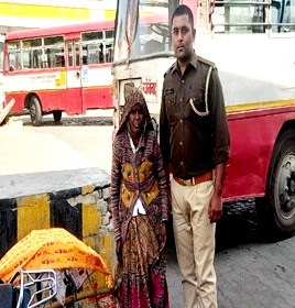 बिजनौर। थाना कोतवाली नजीबाबाद पर तैनात पुलिसकर्मी ने मानवता का परिचय देते हुए रोडवेज स्टैन्ड क्षेत्र में घबराहट में घूमती देखी गयी महिला को फल व पानी पिलाकर ढाढ़़स बंधाया और उसके परिजनों के पहुंचने तक सेवा सुश्रूषा की। उत्तर प्रदेश राज्य सड़क परिवहन के नजीबाबाद डिपो बस स्टैन्ड पर रात्रि गश्त के दौरान थाना कोतवाली पर तैनात पुलिसकर्मी संदीप कुमार ने एक महिला को घबराहट के साथ इधर से उधर घूमते पाया। रात्रि के समय महिला को घबराहट में घूमते देख कांस्टेबिल संदीप कुमार ने महिला को फल खिलाए तथा पानी पिलाया। इसके बाद पुलिसकर्मी संदीप ने महिला से उसके अकेले घूमने के बारे में जानकारी प्राप्त की। महिला ने अपना परिचय कैला देवी पत्नी कृष्णा निवासी नंगला खादर थाना आदमपुर जनपद अमरोहा होना बताया। महिला ने बताया कि वह परिजनों के साथ हरिद्वार गयी थी। वहां हर की पैड़ी पर वह परिजनों से बिछुड़ गयी और भटककर यहां पहुंच गयी। महिला से उसका पते की जानकारी होने पर संदीप कुमार ने महिला के परिजनों से संपर्क के प्रयास शुरु कर दिए। इसके बाद फोन के माध्यम से परिजनों से स पर्क कर उन्हें महिला कैलो देवी की कुशलता का समाचार दिया। परिजनों के यहां पहुंचने तक कांस्टेबिल ने मानवता का परिचय देते हुए महिला की सेवा सुश्रूषा की। महिला के परिजनों ने संदीप कुमार को धन्यवाद दिया। वहीं घटना की जानकारी होने पर अन्य लोगों ने कांस्टेबिल संदीप कुमार के इस व्यवहार की सराहना की।