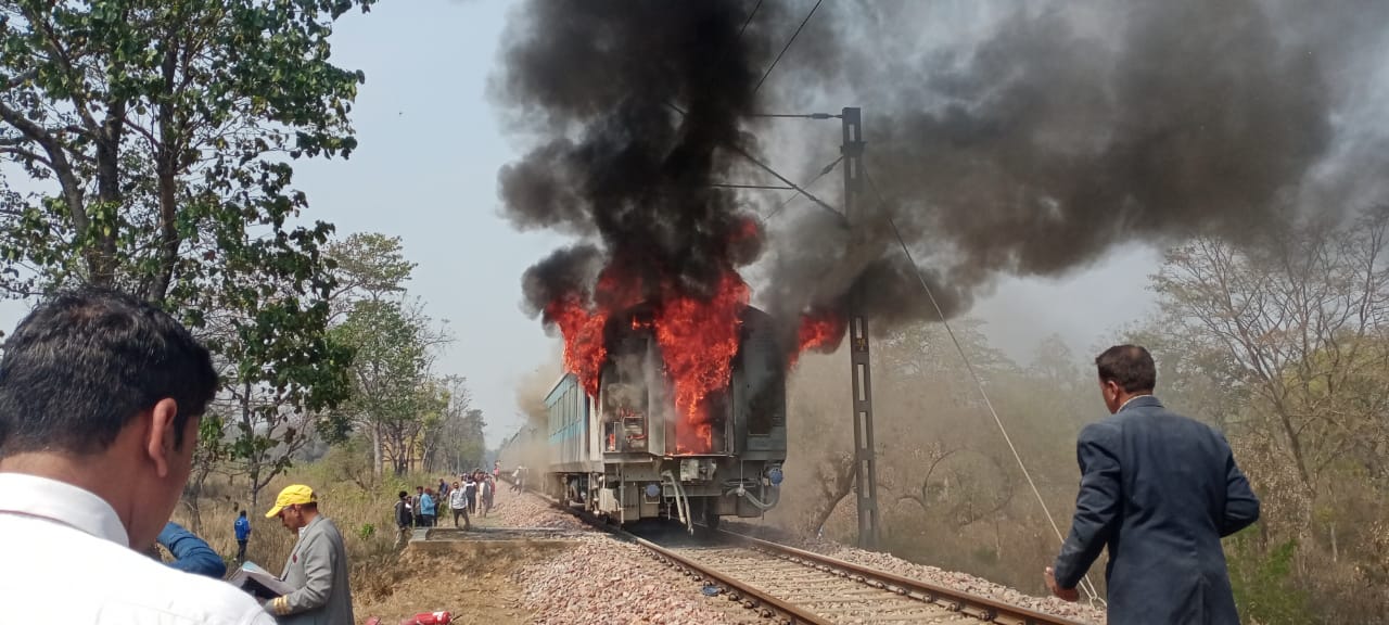 उधर आग लगने की सूचना पर रेलवे अधिकरियों में हड़कंप मच गया। इसके बाद मौके पर रेलवे के मंडल स्तरीय उच्चाधिकारी व अन्य अधिकारी पहुंच गए। समाचार लिखे जाने तक ट्रेन के कोच में लगी आग को काबू पाने की कोशिश की जा रही थी। आग लगने का कारण बोगी में शार्ट सर्किट होना माना जा रहा है। मौके पर बचाव कार्य जारी है।