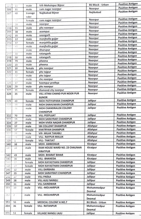 जनपद बिजनौर में लगातार बढ़ रहा है कोरोना वायरस। जनपद में गुरुवार को कोरोना संक्रमण के आए 411 नए मामले। जनपद में 1980 हुए कोरोना संक्रमण के एक्टिव केस।
