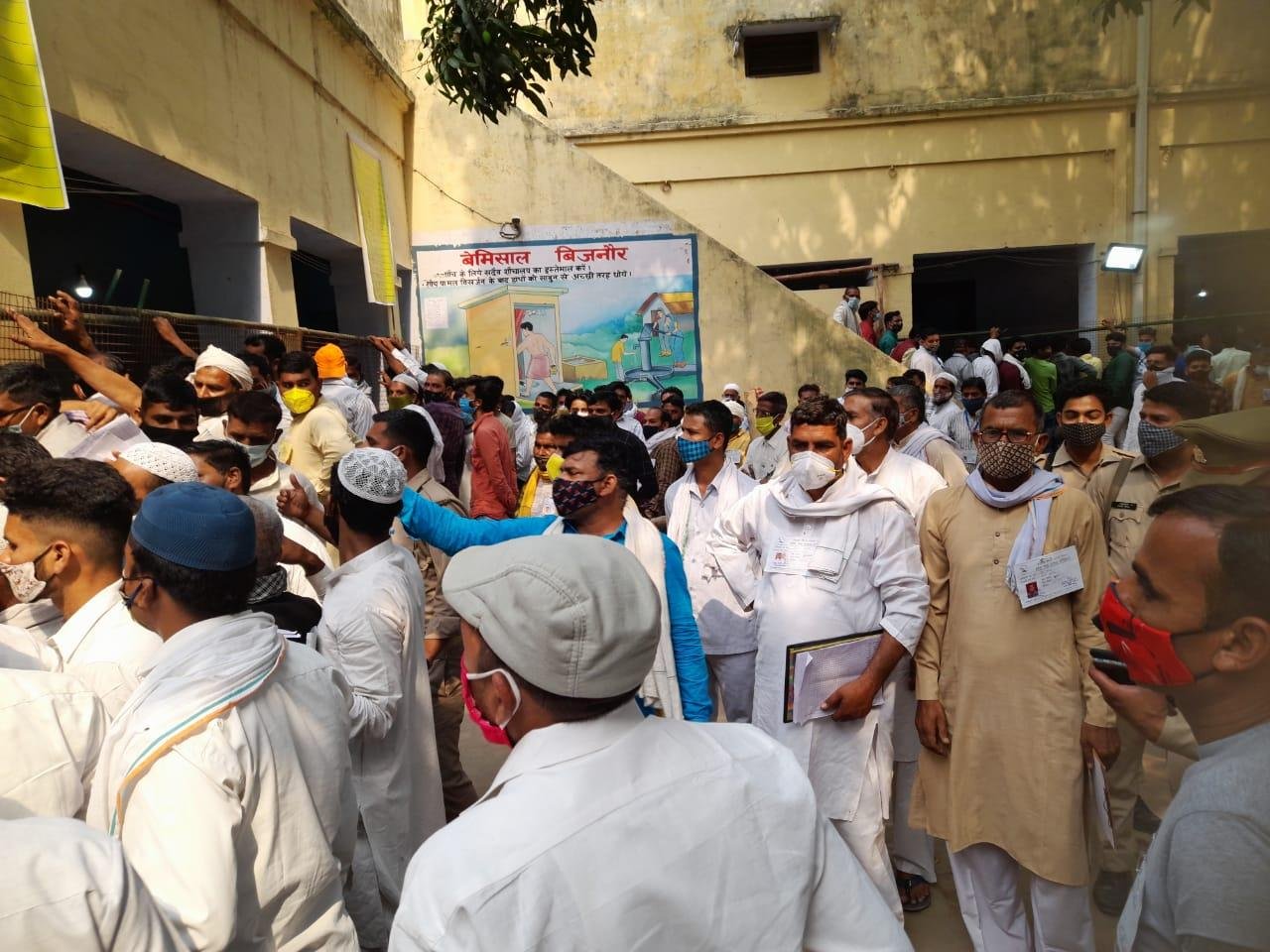 बिजनौर। त्रिस्तरीय पंचायत चुनाव को लेकर रविवार से जारी मतगणना सोमवार को समाप्त हुई। इस दौरान लॉक डाउन नियमों को खुल कर उल्लंघन किया गया। मतगणना स्थल सीडी इंटर कालेज हल्दौर के आसपास एकत्र भीड़ को खदेडऩे के लिए पुलिस को कई बार लाठियां फटकारनीं पड़ीं। सोमवार दिन में जारी परिणामों में ब्लॉक हल्दौर की ग्राम पंचायत अगरी से बबली रानी ४७४, गंगदासपुर से रामवीर सिंह ३२४, कम्भौर से रेणू ८४२, धोमपुर से सुशीला ४२७, भरैसा सुनीता ६३१, अ.पुर मुन्ना उर्फ दादरपुर से श्रीमती अनुपम ४४२, इस्लामपुर नीमदास से सुमन देवी ३०२, अ.पुर चंदरू गडाना से शिव ध्यान ४५२, गोपालपुर से पूनम ५९४, पेदी से जोगेन्द्री देवी ४४३ मत, सालमाबाद से नीतिका चौधरी ७९३, सदुपुरा से अमित कुमार ११०८, मुबारकपुर तालन से नूरजहां ९८९, रसूलपुर पित्तनका से बलविंदर कौर ४३२, पृथ्वीपुर से निर्देश देवी ४४५, सिरधनी बंगर से अनवर जमाल ४०७, सलेमपुर मथना से राजकुमार २०६, चौकपुरी से मिथलेश ५३४, मुकरदंपुर से धर्मेन्द्र सिंह ६७४, गौसपुर टॉपरी से रेखा ६१७, खारी से नदीम ९८२, बिसाठ से नरेश ७०६, चांदा नंगली से सत्यम चौधरी ६७२, गंगौड़ा शेख से कैफुल इस्लाम ६९४, गंगौड़ा जट से फूलवती ३४८, नांगल जट से रेखा देवी १५३०, धनौरी से अलका ७०३, कान्हा नंगला से शालू देवी ३६३, इस्लामपुर थम्बूचाऊ से रचना ७६१, उमरी कलां से शहबाज अली १७०३, कुम्हारपुरा से आंचल राजपूत १३५३, हरदासपुर गढ़ी से जोगिन्द्र ६२३, शाहनगर से जोविन्द्र ४३७, कूकड़ा इस्लामपुर से सागर ७६३, बिलाई से प्रवेज ६५३, खेडक़ी टप्पा नांगल से रचना सैनी ३८९, इनामपुरा से मो. अनवार ३९५, इस्सापुर से सुधीर कुमार ५७०, शेरपुर से हेमेन्द्र सिंह ७६२, पुटठा से सुभद्रा देवी ४५८, फरीदपुर सदीरन से महेश कुमार ४१५, नसीरपुर नैनसिंह से हेमेद्र सिंह ४६७, जलालपुर हसना से संजीव नत्थू १२७५, अतापुर खतापुर से केहर सिंह ४२८, ननुपुरा से पारूल ४३२, फतेहपुर कलां से गजेन्द्र सिंह ६१५, नंगली छोईया से राहुल कुमार ३८३, छाछरी टीप से कमलेश ४३५, मुकरपुर गुर्जर से देवेन्द्र कुमार ७०२, करीमनगर उर्फ उलेढ़ा से सुदेश ५१३, मण्डौरा जट से रामेश्वर सिंह ४७९, वाजिदपुर से धर्मेन्द्र सिंह ५८२, कड़ापुर से विनीत कुमार ५५३, निजामतपुरा गंज से फिरोजा ११०३, दारानगर से रूखसाना खातून ११९३, जहानाबाद से तहजीब ११४४, चंदनपुरा से सुधीर कुमार ४९७, फरीदपुर भोगन से नीसा ९००, रेहड़वा से पम्मी ५११, सिकंदरपुर लालमन मुन्नी देव १९६, अम्हेड़ा से समीमा खातून १२५२, सल्लाहपुर से शाकिब ३६७, शादीपुर कलां से कविता ३४५, मिठन कुंवर प्रताप से अश्वनी ४२७, लाडनपुर से राजवाला ५००, शफीपुर हीरा से किश्वर जहां ४७२, सिसौना से अमित कुमार ९५७, पिलाना से विनोद ६२७, गांगू नंगला से शबनम ५४०, उमरी पीर से इसरत 