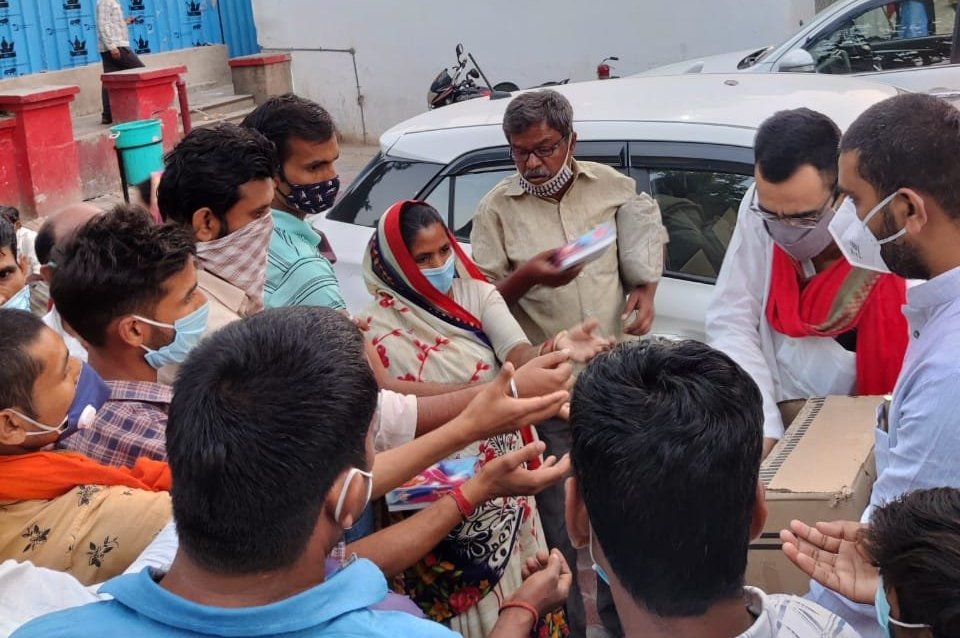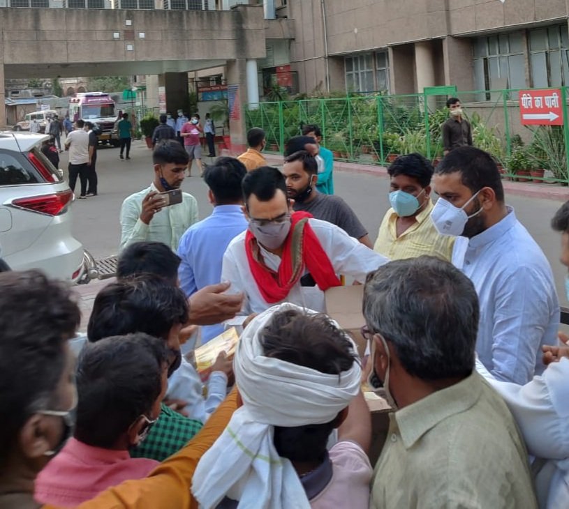 समाजवादी पार्टी लखनऊ की महानगर इकाई ने अस्पताल में तीमारदारों व गरीबों को वितरित किया खाना