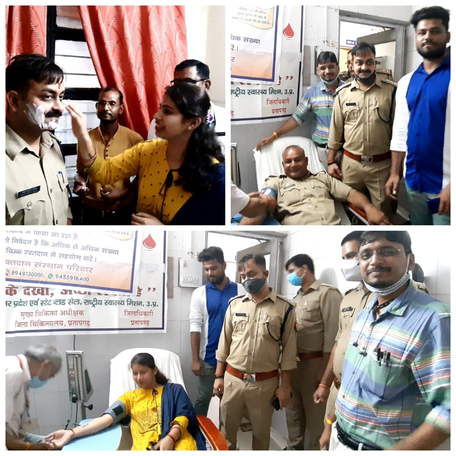 प्रतापगढ़। रक्तदान संस्थान एवं पुलिस टीम द्वारा क्षेत्राधिकारी नगर अभय कुमार पांडेय के जन्मदिन के अवसर पर स्वैच्छिक रक्तदान शिविर का शुभारंभ क्षेत्राधिकारी द्वारा फीता काटकर किया गया। इसके पश्चात रक्तदान संस्थान की टीम द्वारा केक काट कर जन्मदिन धूमधाम से मनाया गया। इस अवसर पर प्रमुख रूप से अभय पांडेय क्षेत्राधिकारी नगर, रमेश कुमार मिश्रा चालक, सपना सिंह, जगत सिंह, विराट सिंह, देवेंद्र विक्रम सिंह, शादाब, सरदार जगमीत सिंह, अजय सिंह आफरून अहमद समेत कुल 13 लोगों ने रक्तदान किया। इसी क्रम में प्रयागराज के मदनानी हॉस्पिटल लूकरगंज में भर्ती मरीज उर्मिला शुक्ला (उम्र 73 वर्ष) के कूल्हे के ऑपरेशन हेतु पुनः एक यूनिट एबी पॉजिटिव रक्त टीबी सप्रू हॉस्पिटल प्रयागराज के रक्त कोष द्वारा प्रदान करवाया गया। परिजनों ने संस्थान के प्रति आभार व्यक्त किया। इसी क्रम में प्रतापगढ़ के रूमा हॉस्पिटल में भर्ती मरीज ज्ञानती सिंह (उम्र 55 वर्ष) निवासी लालगंज प्रतापगढ़ के डायलिसिस हेतु एक यूनिट एबी पॉजिटिव रक्त जिला चिकित्सालय प्रतापगढ़ के रक्तकोष द्वारा प्रदान करवाया गया। कार्यक्रम के दौरान सीओ सिटी अभय कुमार पांडेय, रमेश कुमार मिश्रा, जिला अस्पताल चौकी इंचार्ज हरीश तिवारी, रक्तदान संस्थान के अध्यक्ष निर्मल पांडेय, सपना सिंह, पवन नंदन भट्ट, अजय यादव, अर्सलान प्रतापगढ़ी, यूपी न्यूज़ के पत्रकार आमिर राइन, कुसुम लता गुप्ता आदि लोग मौजूद रहे। (साभार-इंडेविन न्यूज़ नेटवर्क)