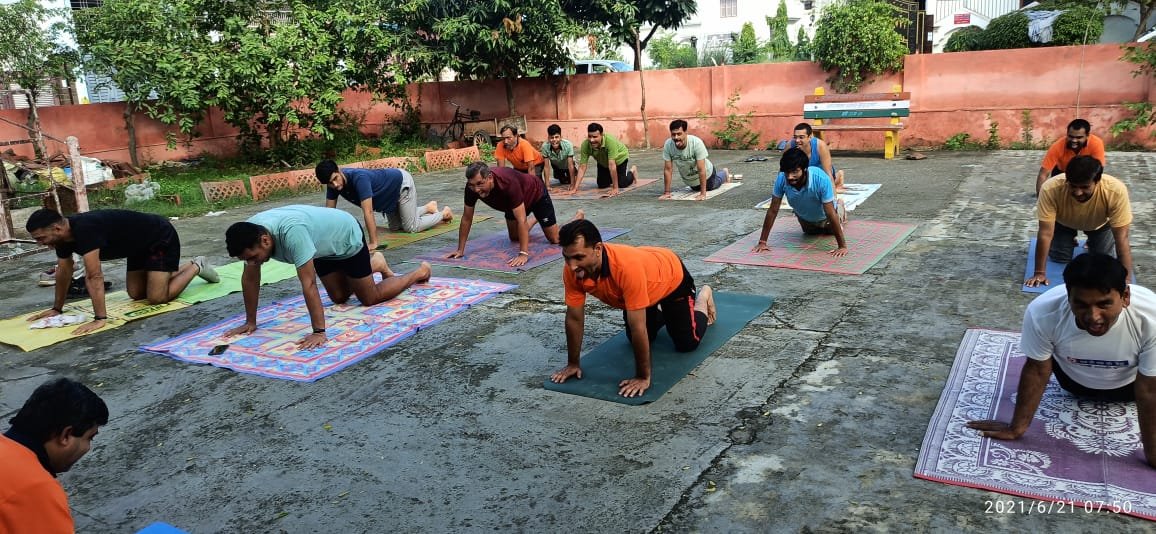 योग दिवस पर रंग लाए क्रीड़़ा भारती के प्रयास। पांच हजार से अधिक परिवारों ने किया योग। शिव मंदिर में योगाभ्यास। इंटरनेशनल नैचुरोपैथी ऑगनाइजेशन ने भी कराया योग।