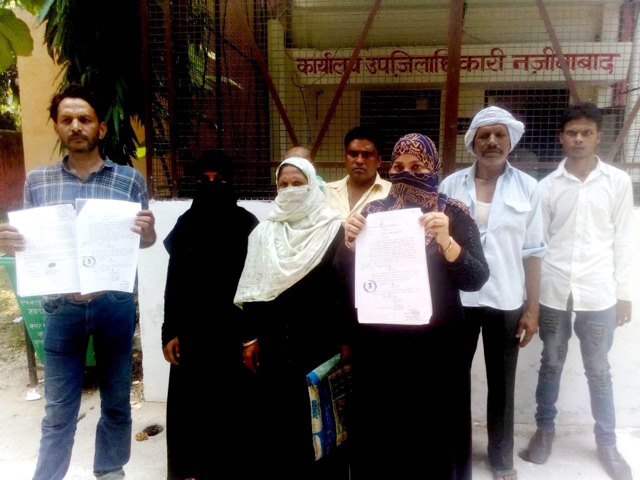 बुधवार को नगर के मौहल्ला रम्पुरा निवासी महिला गुलिस्ता पत्नी मौहम्मद यामीन परिवार की कुछ महिलाओं व पुरुषों के साथ तहसील परिसर पहुंची। जहां वह धरना देकर बैठ गयी। गुलिस्ता का कहना है कि उसके पति मौहम्मद यामीन की वर्ष 2017 में मृत्यु हो चुकी है। उसके पति की भागूवाला के खसरा नम्बर 489 में लगभग सवा दो बिघा भूमि शेष है, जिस पर गांव के ही नफीस पुत्र अब्दुल कय्यूम निवासी भागूवाला बुरी नजर रखता और जमीन को हड़पना चाहता है। उक्त खसरा नम्बर में जहांगीर के नाम पर 25& एअर जमीन थी। जिसमे से आसमा परवीन ने जहांगीर से सन 2007 में 114 एअर जमीन खरीदी थी, जिसे उसने जमील अहमद पुत्र अब्दुल रहमान निवासी हर्षवाडा को बेच दी थी लेकिन सन 2009 में नफीस पुत्र अब्दुल कय्यूम निवासी भागूवाला ने जहांगीर के साथ धोखाधड़ी करके 1&9 एअर के स्थान पर 25& एअर का बैनामा करा लिया। जहांगीर को धोखाघड़ी का पता चलने पर उसने न्यायालय नजीबाबाद में बैनामा कैसिल करने को वाद दायर कराया, जिसका मुकदमा अभी भी न्यायालय में विचाराधीन है। उसके पति ने सन 2009 में नफीस अहमद पुत्र अब्दुल कय्यूम निवासी भागूवाला के विरुद्ध अपनी भूमि को लेकर न्यायालय नजीबाबाद मे वाद दायर किया था, जिस पर न्यायालय की ओर से आदेश दिया गया था कि प्रतिवादी जमीन में रखे सामान व खड़े पेड़ों में तोडफोड करके डाल को नुकसान पहुचाकर या अन्य किसी प्रकार से वादी के कब्जे में किसी प्रकार की कोई मदाखलत व मजाहमत स्वयं अथवा नौकरों से कराए। विधवा महिला ने आरोप लगाया कि नफीस अहमद राजनैतिक लोगों के सहारे लेखपाल और पुलिस के बल पर उसकी जमीन पर कब्जा कर निर्माण कार्य करा रहा है। महिला ने अपनी भूमि को कब्जामुक्त कराए जाने की मांग करने के साथ ही इंसाफ न मिलने पर मजबूरन आत्महत्या कर लेने की चेतावनी दी है। महिला ने बताया कि वह इस मामले में मुख्यमंत्री पोर्टल पर भी शिकायत दर्ज करा चुकी है।