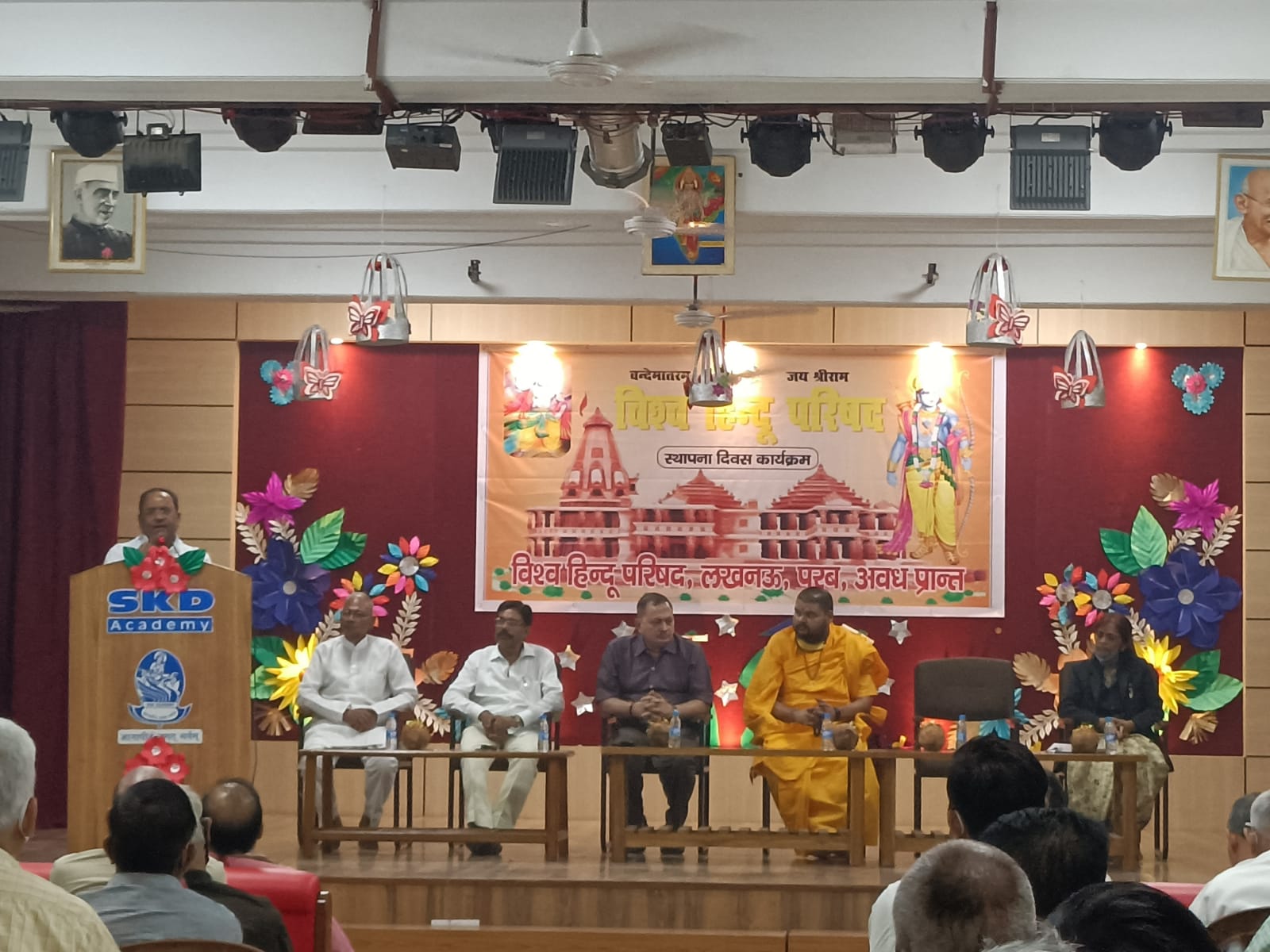 गोमती नगर स्थित शिक्षण संस्थान एसकेडी एकेडमी के सभागार में विश्व हिंदू परिषद के स्थापना दिवस का कार्यक्रम विहिप के लखनऊ पूरब के कार्यकर्ताओं ने आयोजित किया। विहिप एवं बजरंग दल के जिला, प्रखंड, खंड एवं बस्तियों से सैकड़ों कार्यकर्ता जोश खरोश के साथ कार्यक्रम में शामिल हुए। कार्यक्रम का शुभारंभ भगवान श्री राम, श्री कृष्ण एवं भारत माता के चित्र पर माल्यार्पण कर दीप प्रज्वलित किया गया। कार्यक्रम का संचालन अलोपी शंकर मौर्य, अध्यक्षता पूर्व डीजीपी न्यायाधीश रेरा भानु प्रताप सिंह ने की। मुख्य रूप से मुख्य वक्ता विहिप के प्रांत संगठन मंत्री श्रीराजेश रहे। मुख्य अतिथि के रूप में स्वामी चैतन्य जी महाराज ने अपने आशीर्वचनों से श्रोताओं को मंत्रमुग्ध किया।