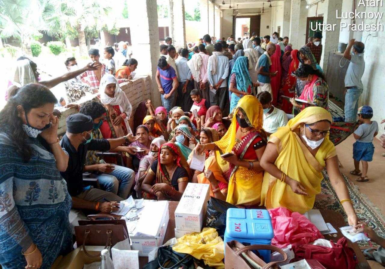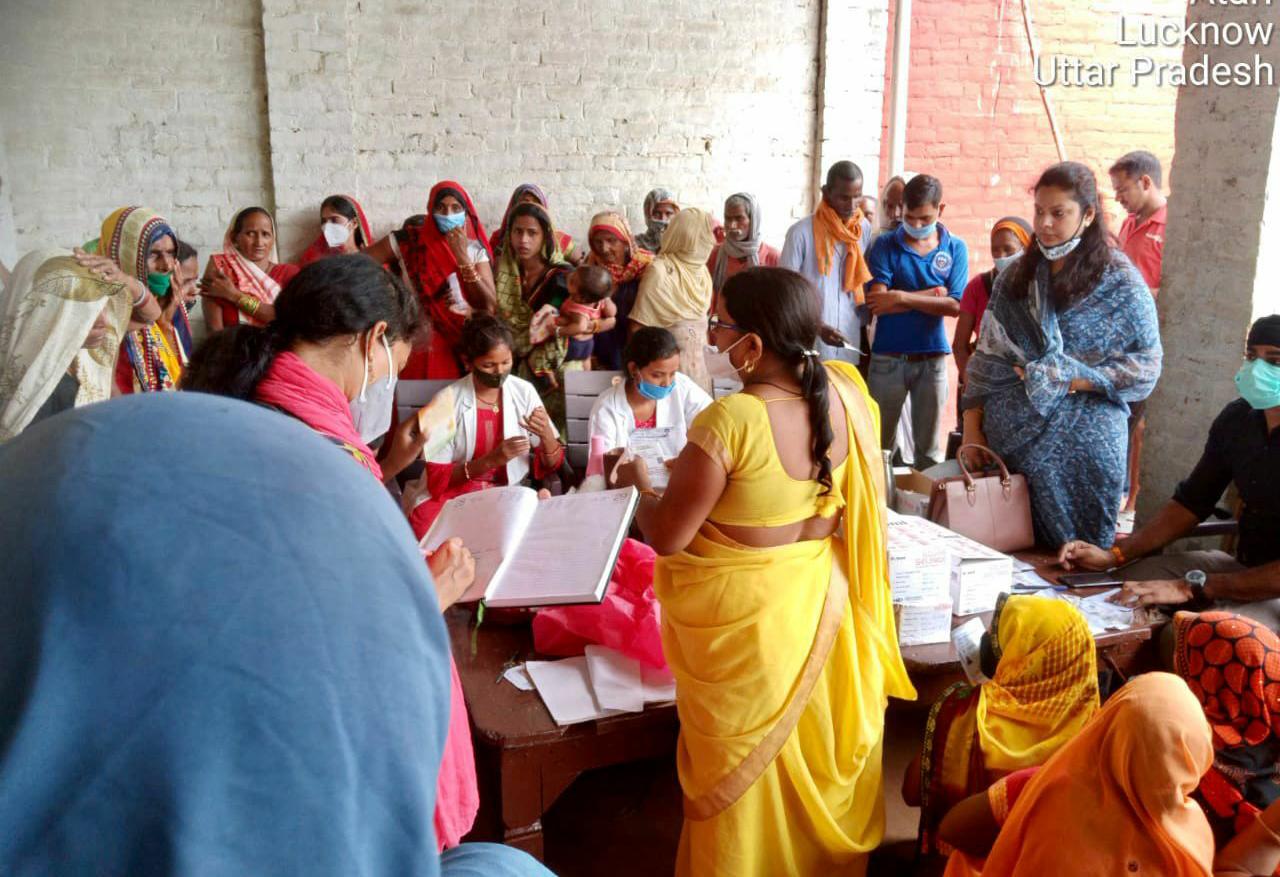 लखनऊ। राजधानी लखनऊ के विकास खंड माल की ग्राम पंचायत अटारी से महिला प्रधान संयोगिता सिंह कोरोना वायरस की तीसरी लहर को लेकर काफी गंभीर हैं। वह ग्राम वासियों की सुरक्षा को लेकर दिन पर दिन कड़ी मशक्कत करती नजर आ रही हैं। ग्राम प्रधान की मांग पर स्वास्थ्य विभाग की टीम ने गांव में टीकाकरण शिविर लगाया तो ग्रामीणों की भीड़ उमड़ी और वैक्सीन लगवाई।