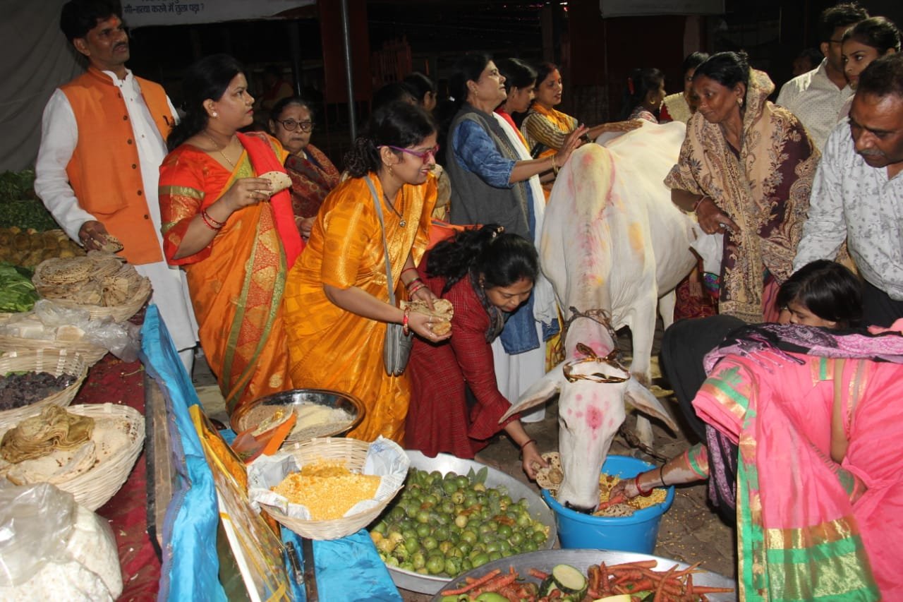 गौ माताओं को 56 भोग अर्पण। गौ माता को राज्य माता का दर्जा मिलने की प्रार्थना। 12 तरह की मिठाई, 10 तरह की सब्जी, 7 तरह के मेवे, 10 तरह की दालें, 5 तरह के फल, 8 प्रकार के अनाज, गुड़, पूड़ी, रोटी, पराठा अर्पण।