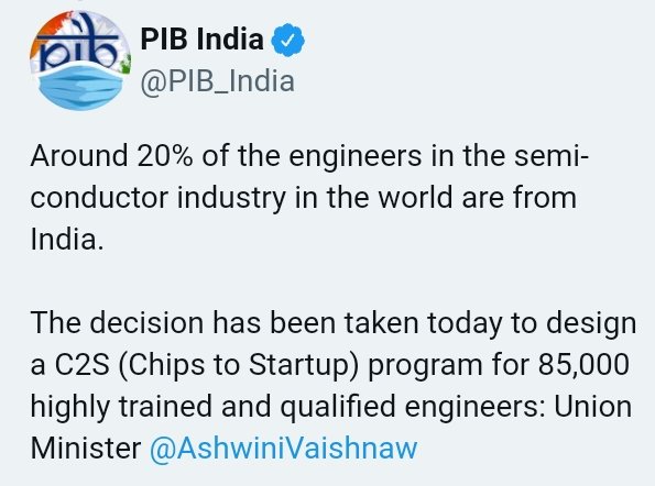 सरकार का प्लान: दूरसंचार और आईटी मंत्री अश्विनी वैष्णव ने कहा कि इस फैसले से माइक्रोचिप के डिजाइन, विनिर्माण, पैकिंग और परीक्षण में मदद मिलेगी। वहीं, एक संपूर्ण पारिस्थितिकी तंत्र विकसित होगा। अश्विनी वैष्णव के मुताबिक भारत के करीब 20 फीसदी इंजीनियर्स सेमीकंडक्टर इंडस्ट्री में हैं। इस संख्या को बढ़ाने के लिए 85 हज़ार हाइली क्वालिफाइड, वेल ट्रेंड इंजीनियर के लिए ‘चिप्स टू स्टार्टअप’ प्रोग्राम बनाया गया है। इसमें बी-टेक, एम-टेक, पीएचडी इंजीनियर्स को तैयार किया जाएगा।