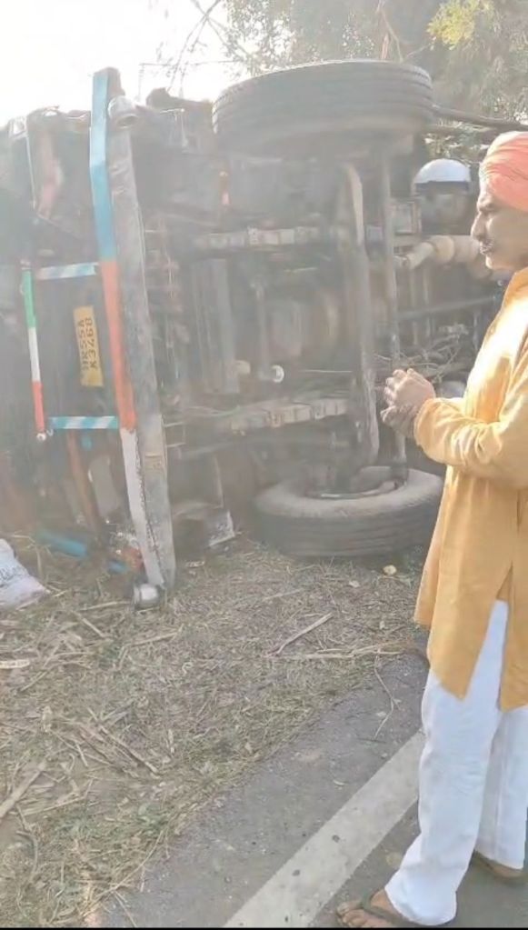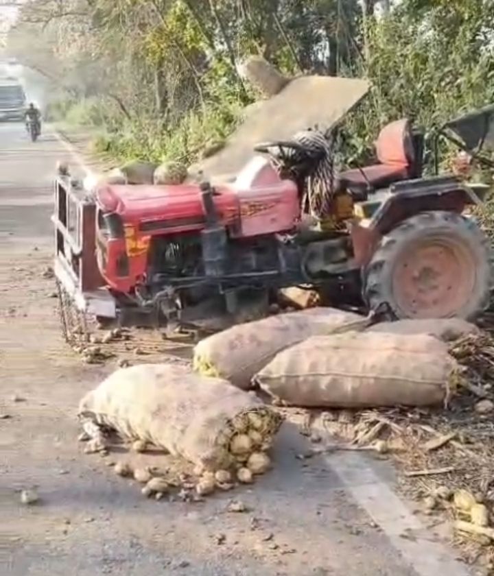 सेब और संतरों से लदे ट्रक ने आलू से भरी ट्रैक्टर-ट्रॉली मारी जोरदार टक्कर