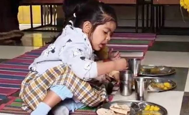 जमीन पर बैठकर अन्य बच्चों के साथ भोजन करती नजर आईं ‘नन्ही सिया’