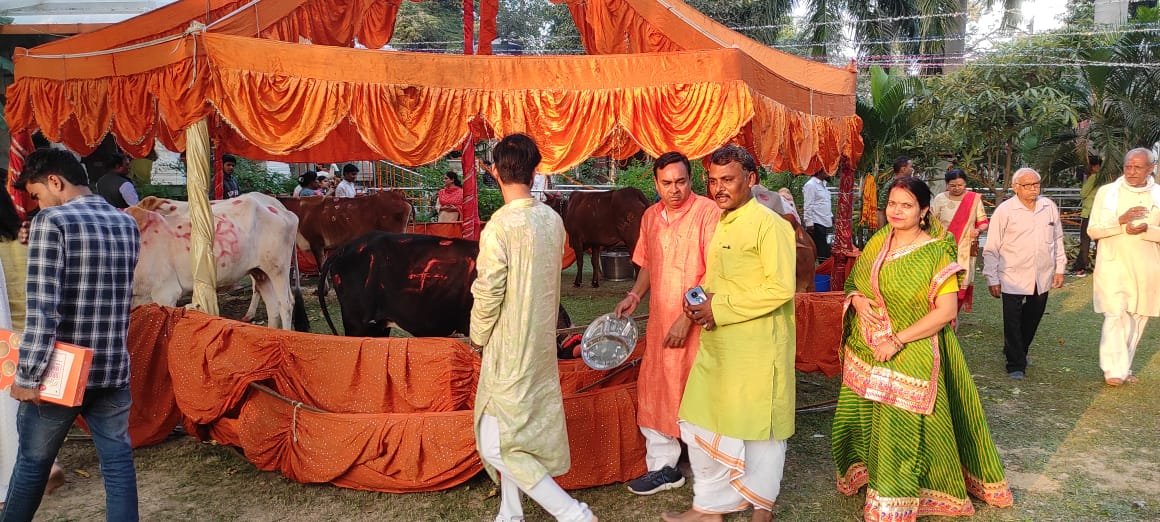 कार्यक्रम के संयोजक अशोक कुमार वैश्य ने बताया कि सबसे पहले सामूहिक हरिनाम कीर्तन किया गया। तत्पश्चात गौ माताओं को 56 भोग अर्पण किया गया। गौ माताओं के लिए 56 भोग में 12 तरह की मिठाई, 10 तरह की सब्जी, 7 तरह के मेवे, 10 तरह की दालें, 5 तरह के फल, 8 प्रकार के अनाज, गुड़, पूड़ी, रोटी, पराठा अर्पण किए गए। कार्यक्रम के बाद 16 लोगों को कामधेनु सम्मान से सम्मानित भी किया गया।