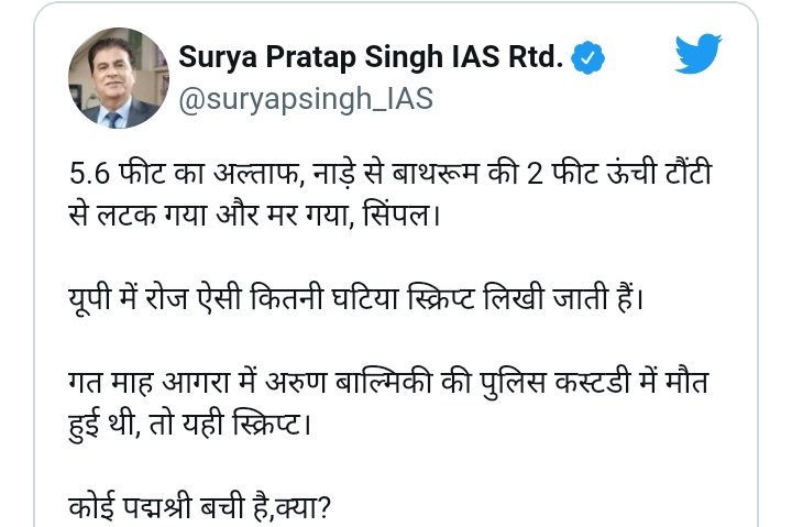 रिटायर्ड आईएएस सूर्य प्रताप सिंह का गंभीर ट्वीट