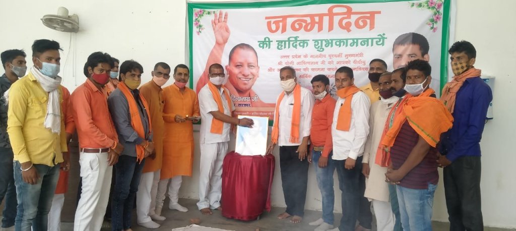 बिजनौर। मंडल मुरादाबाद के हिन्दू युवा वाहिनी के कार्यकर्ताओं एवं पदाधिकारियों ने हिन्दू युवा वाहिनी के संस्थापक व संरक्षक गौरक्षपीठाधीश्वर, महंत योगी आदित्यनाथ का 49 वां जन्मदिवस बड़े हर्षोल्लास व उत्साह के साथ मनाया। कोविड-19 की गाइड लाइन का पूर्ण अनुपालन करते हुए शनिवार को श्रीराम इंस्टीट्यूट ऑफ फार्मेसी, श्रीराम पुरम (पीपलसाना) धामपुर जनपद बिजनौर में मुख्यमंत्री महंत योगी आदित्यनाथ का 49 वां जन्मदिवस मनाया गया।
